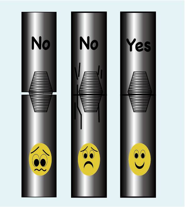 To keep joining parts from loosening, place a nipple-pin on the nipple. At normal temperature, the pin will remain in a solid state. As the temperature rises, the melting nipple pin will bind the electrode and nipple together.